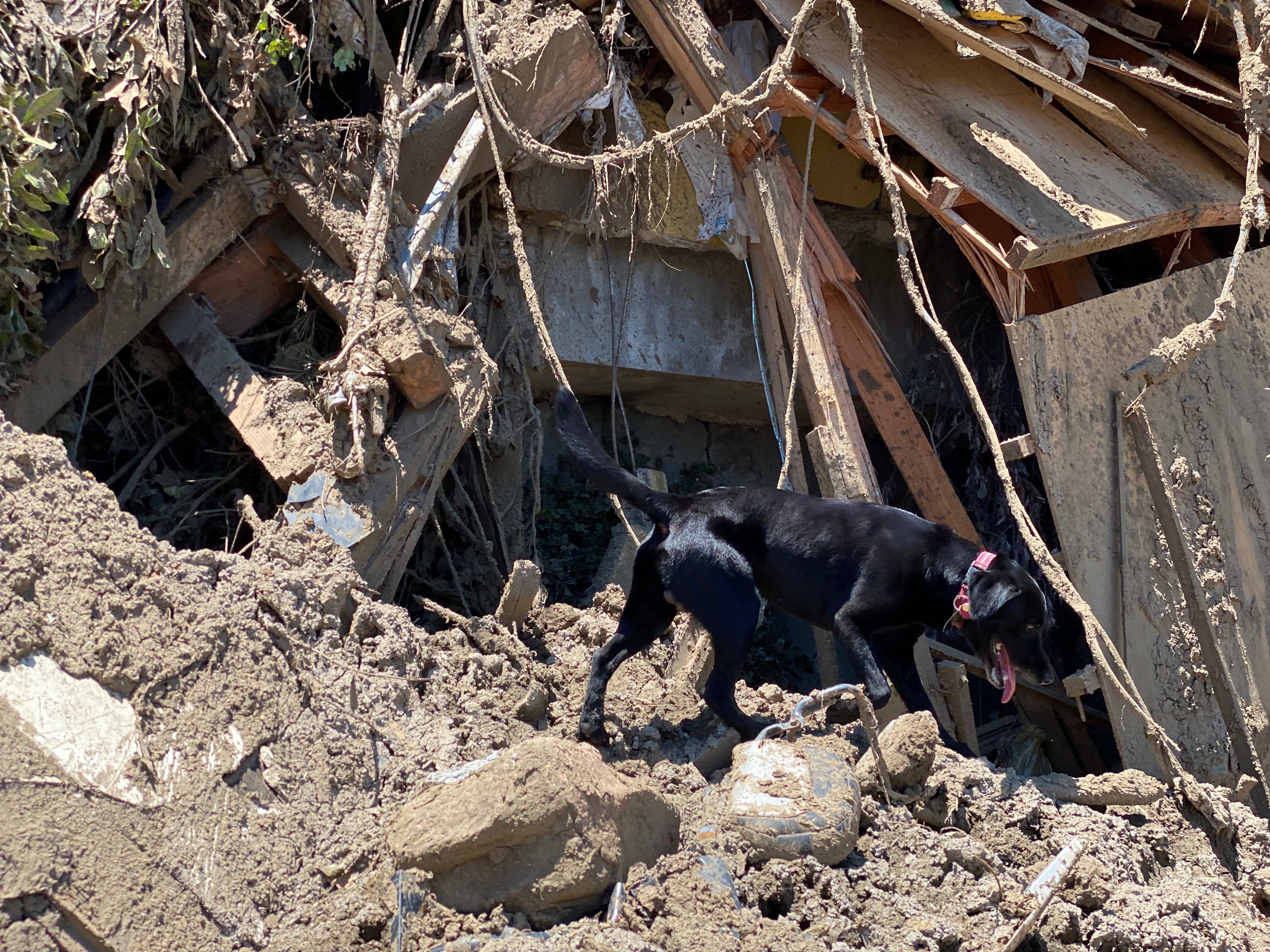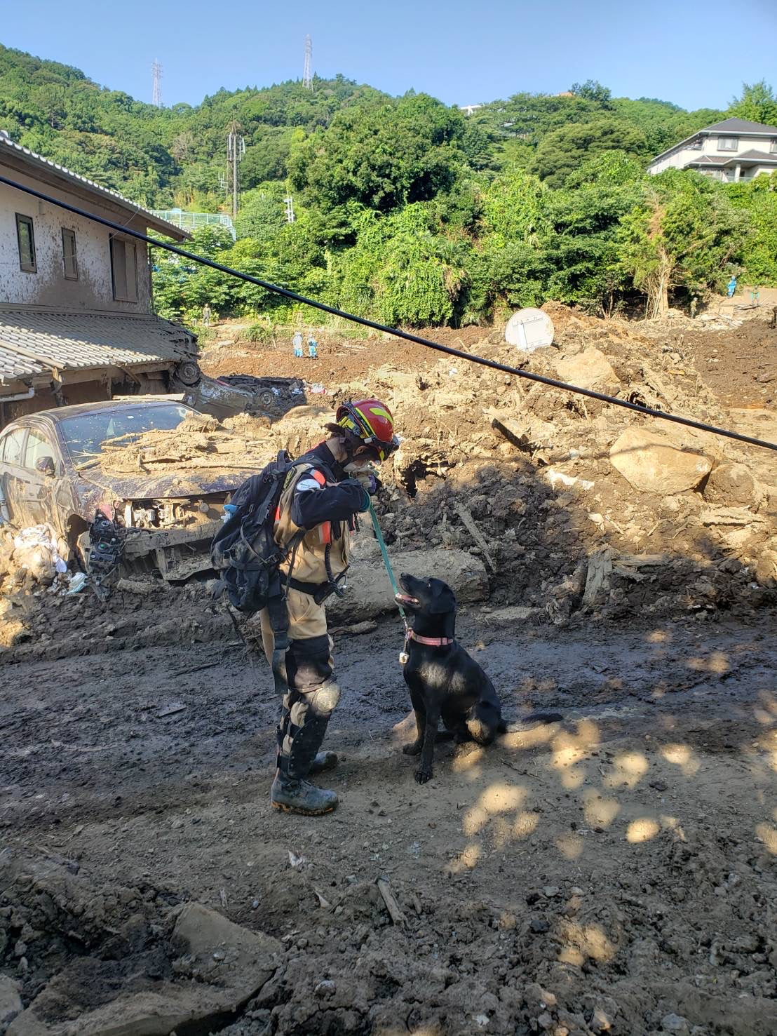 近年、大雨による被災が増えていることから、災害救助犬のニーズが求められています。